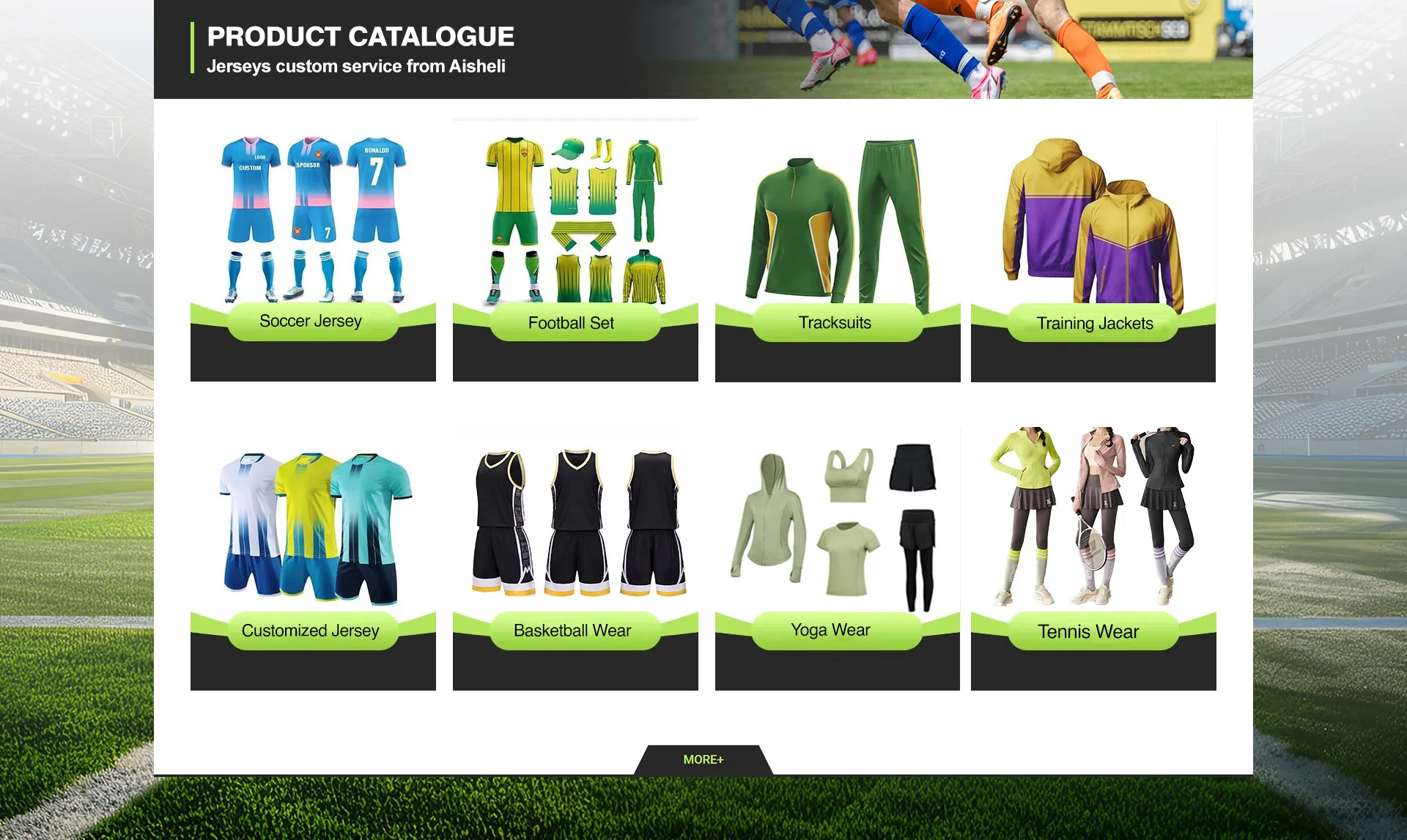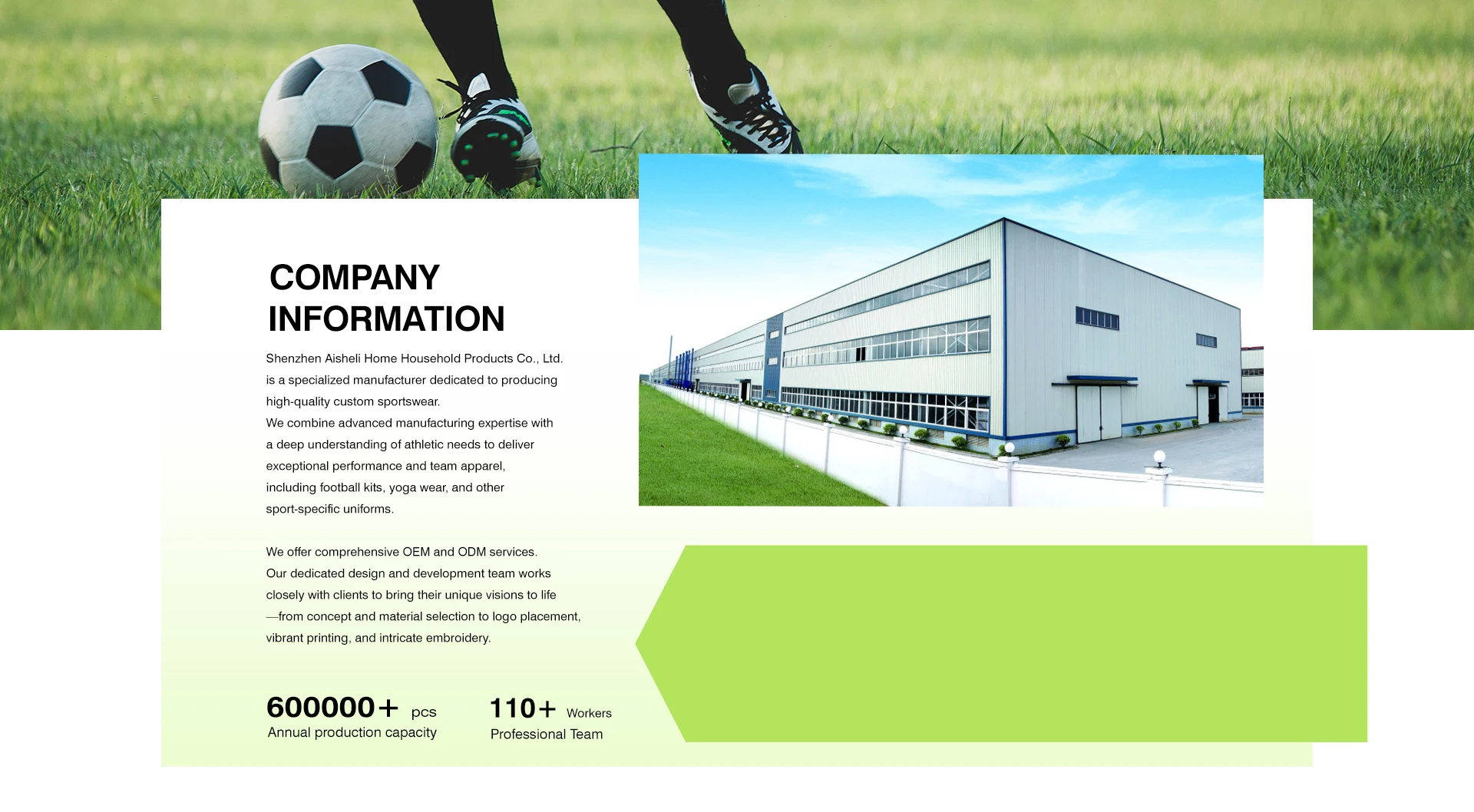 المنتجات الرئيسيةملابس كرة القدم ، ملابس كرة السلة ، ملابس التنس ، ملابس اليوغا ، ملابس رياضية